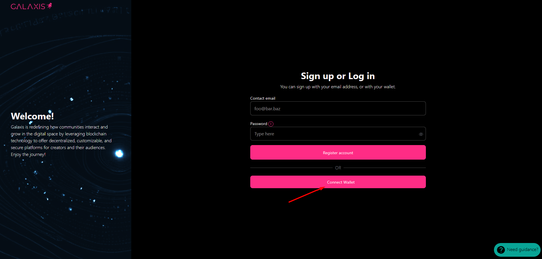 Click Sign up with wallet, and then approve the signing request in your wallet.