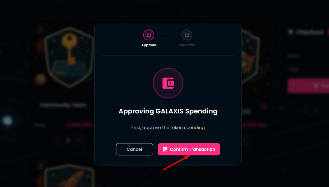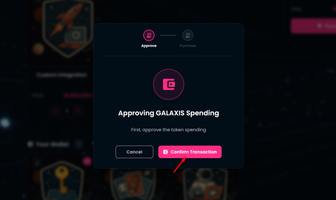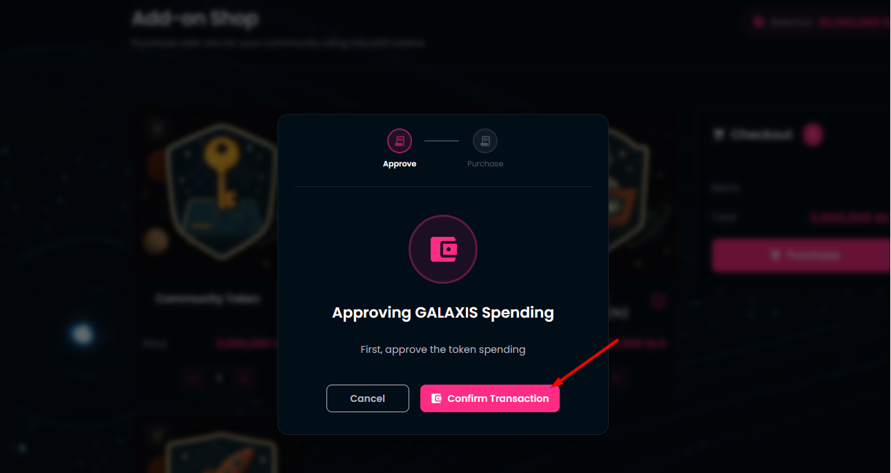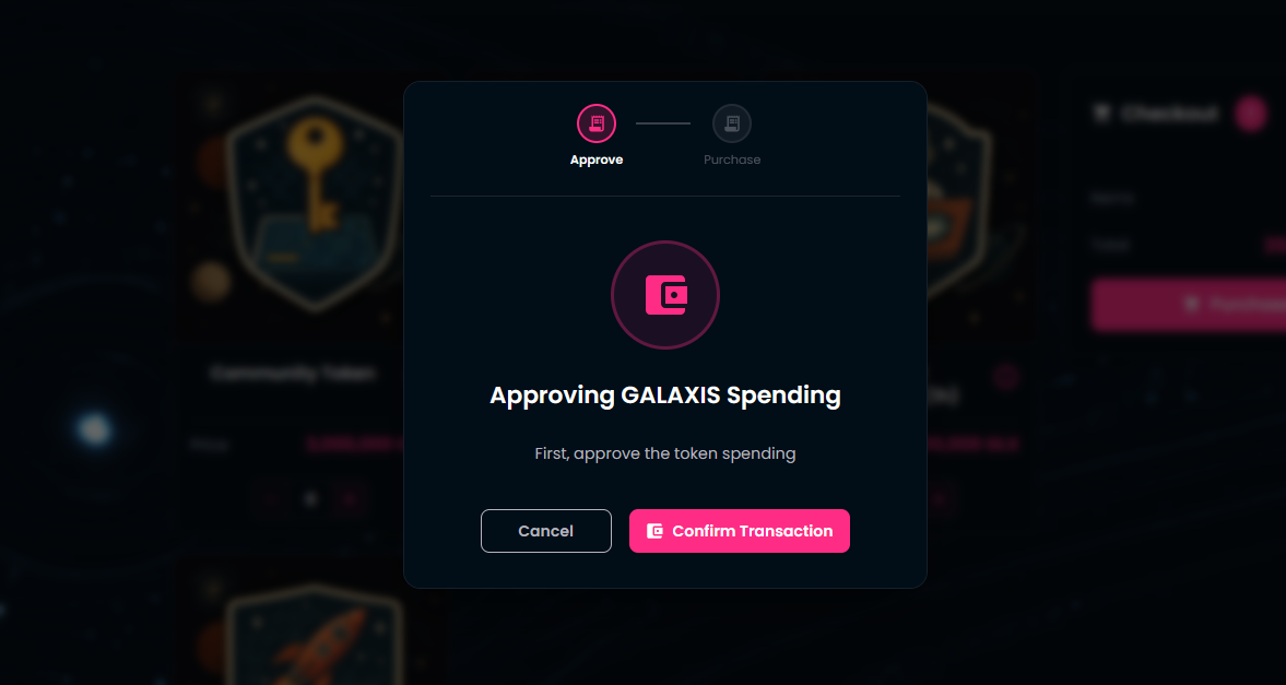 Approve the GALAXIS token spending in your wallet.