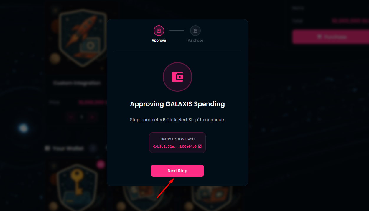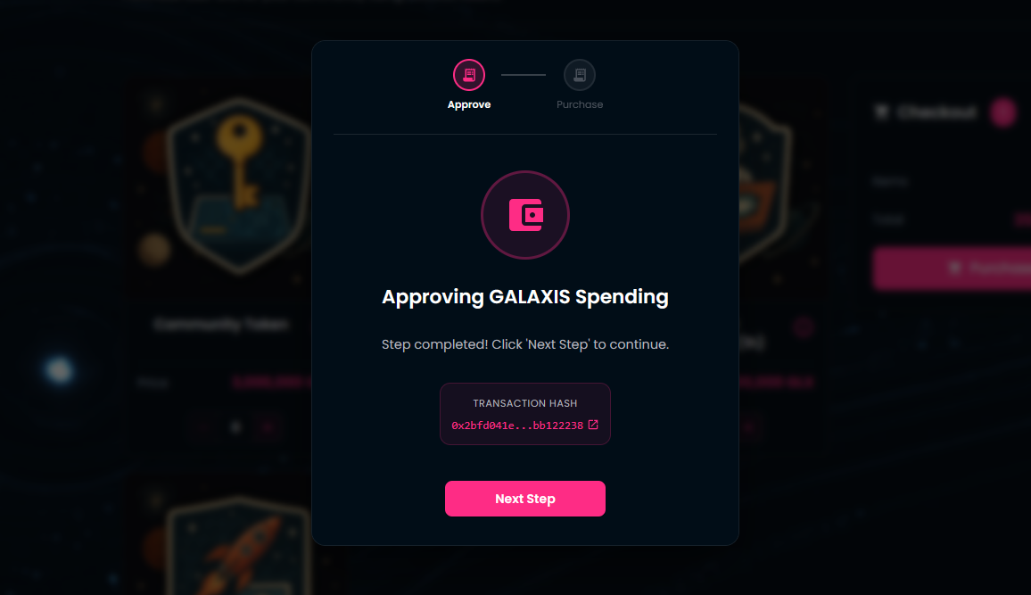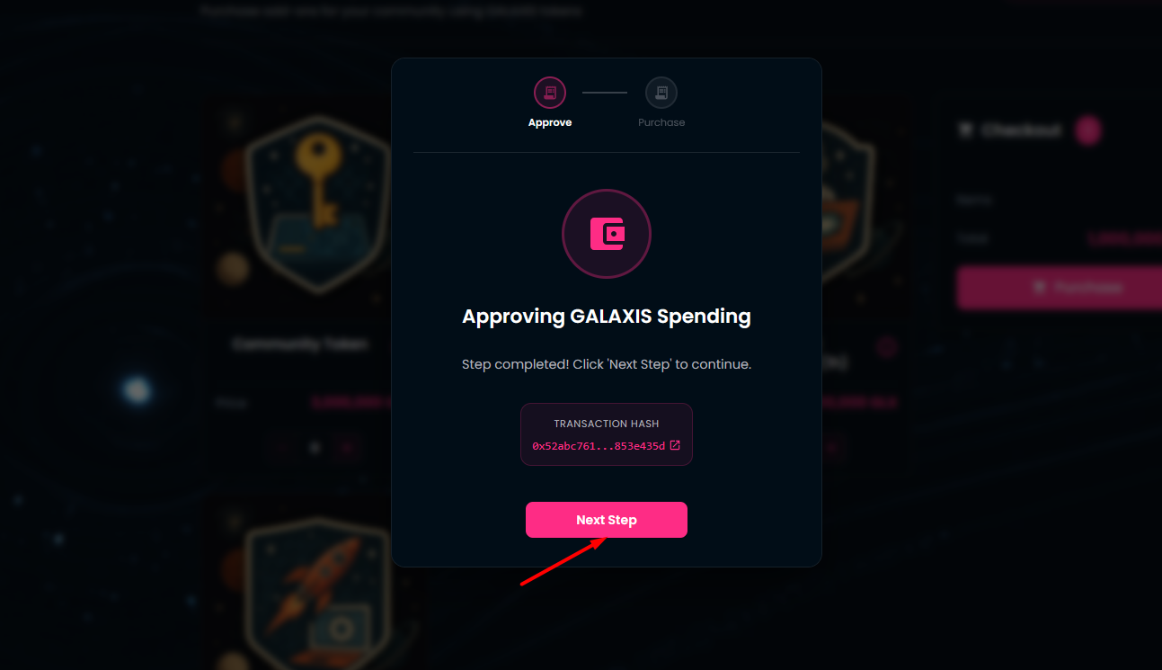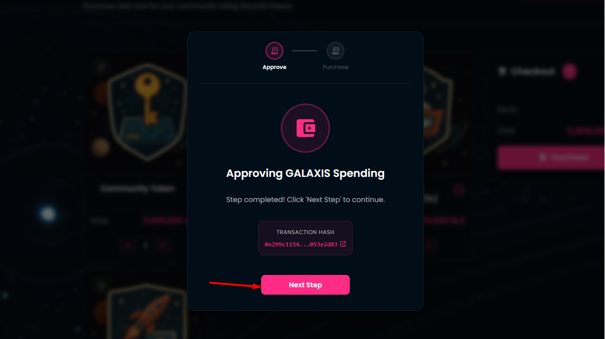 Approve the GALAXIS token spending in your wallet.