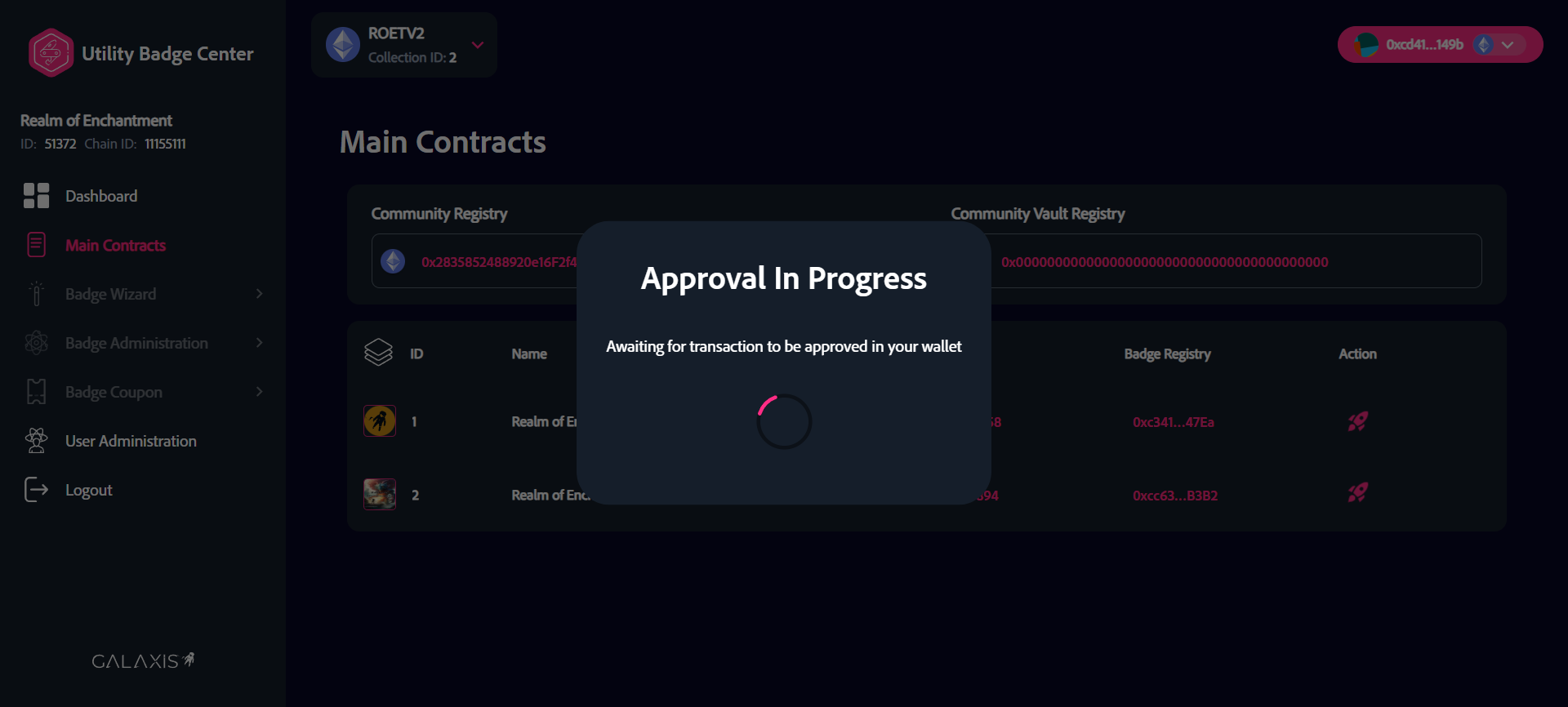Wait a several seconds/minutes until the main contract is deployed after you have approved the transaction in your wallet.