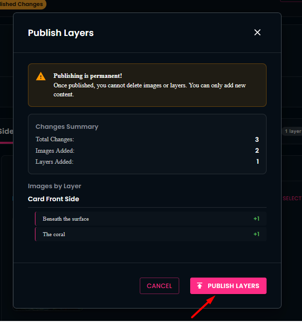 Let’s look at Configure Layers. Here you will also find the uploaded images, grouped by layer and by card side.