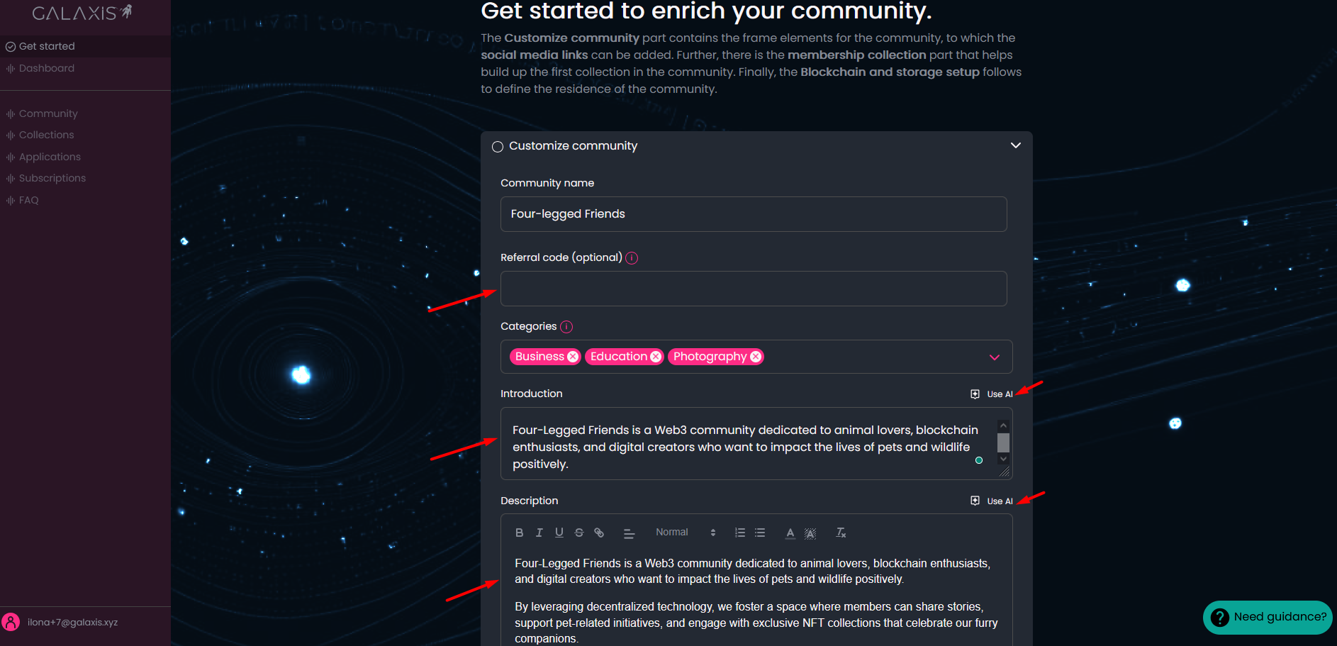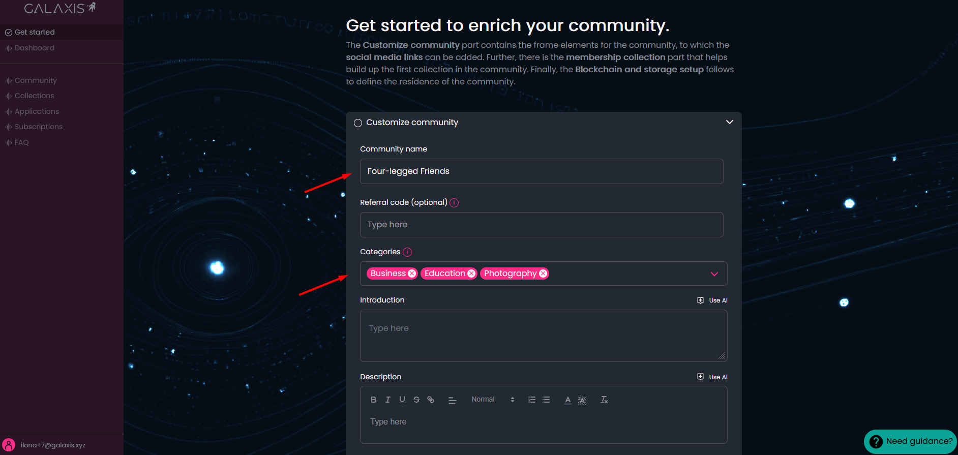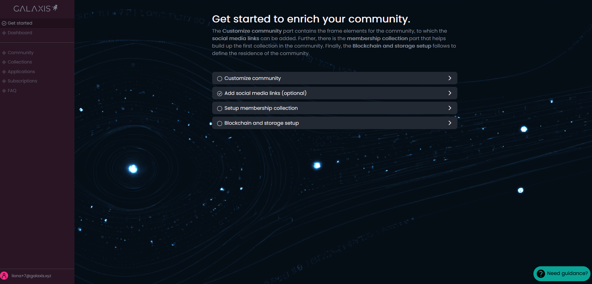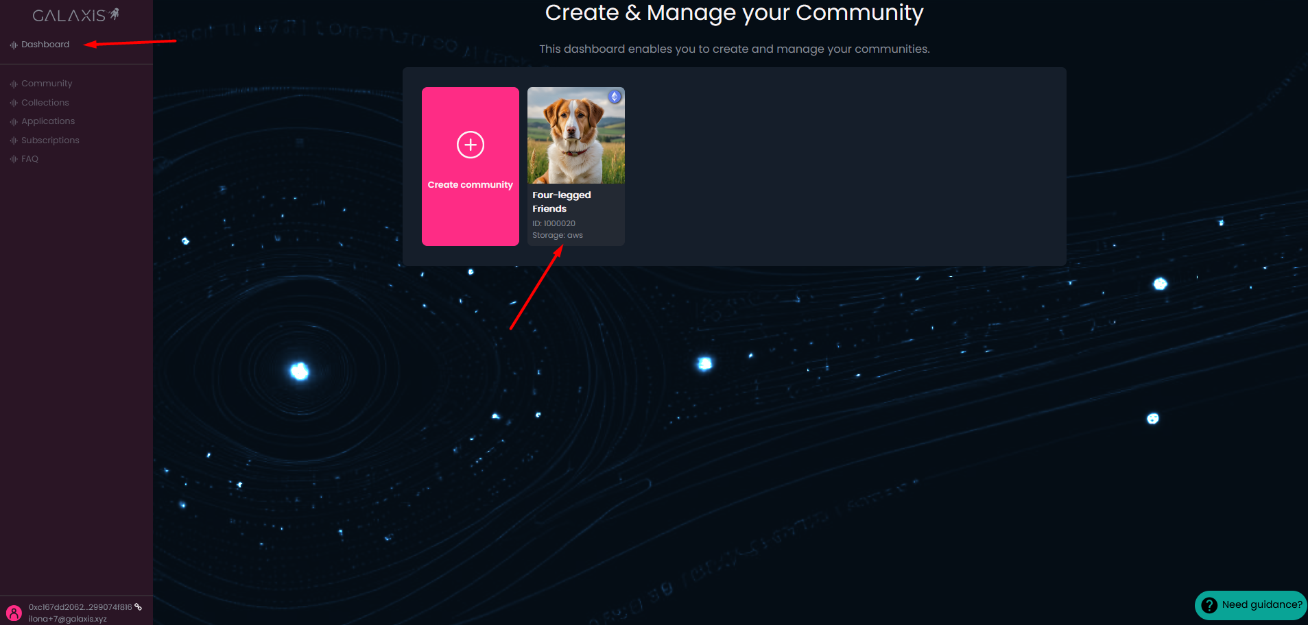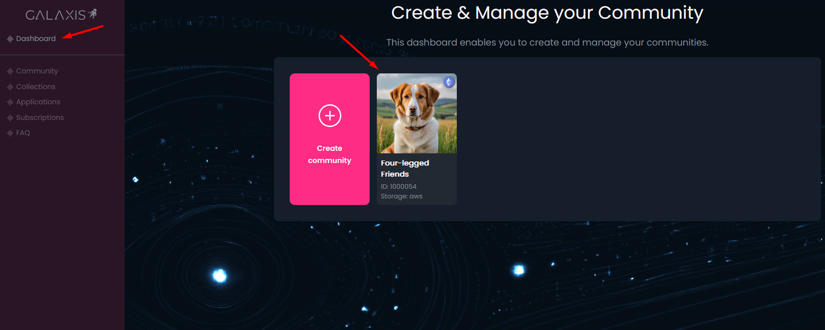 In case you wish to modify the community website after creation, we provide the possibility to do that in the Mission Control, after selecting your community card on the Dashboard.