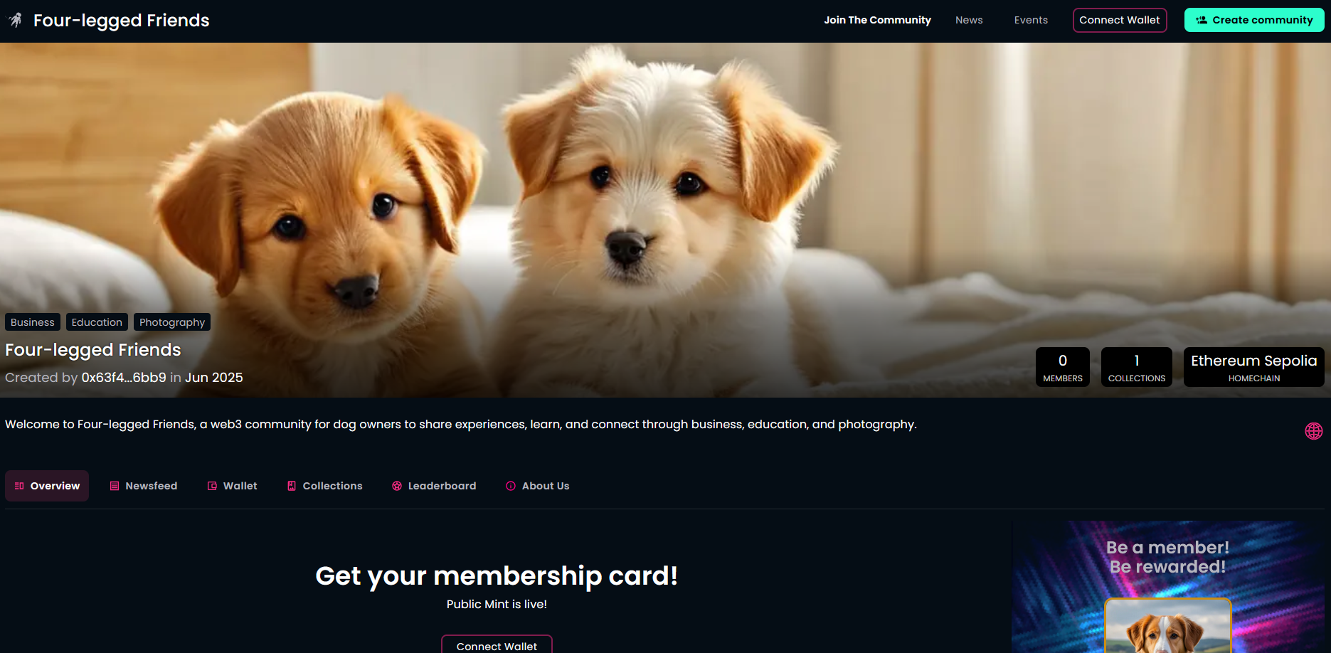 Congratulations! Your community website is published and the potential community members who visit the website can mint membership cards for themselves.