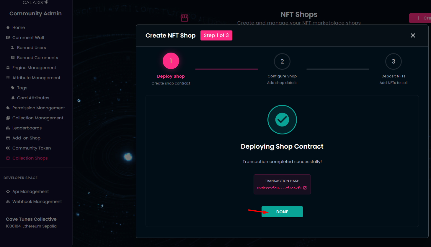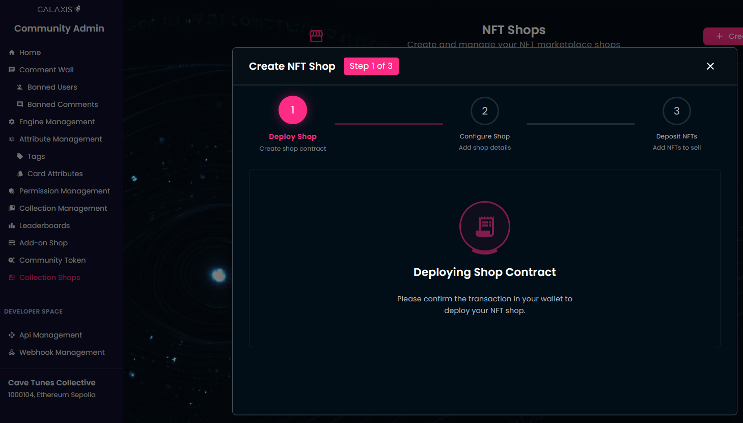 Approve the transaction in your wallet - this will deploy the shop contract.