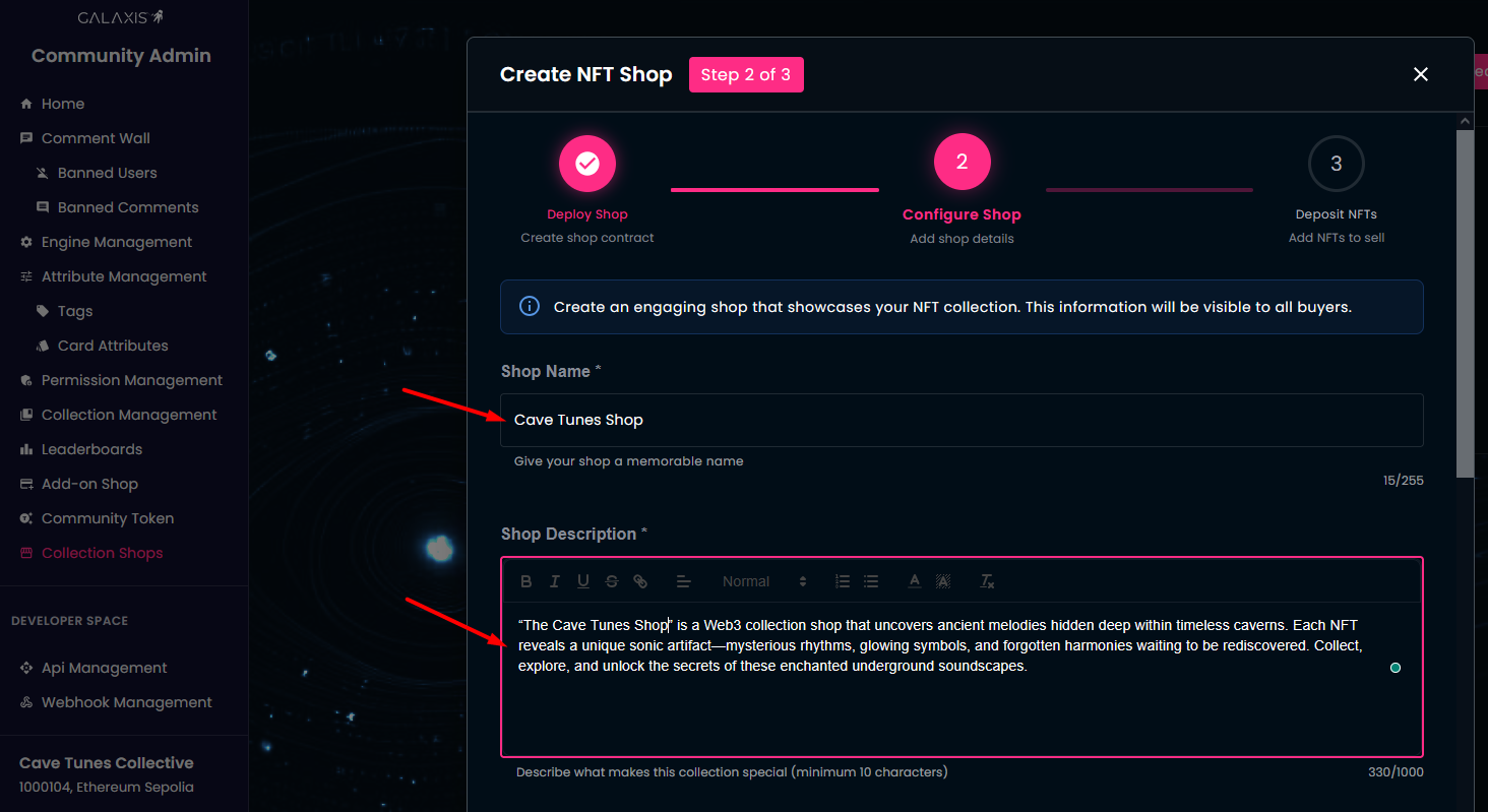 A Web3 shop featuring ERC721 NFTs offers a decentralized marketplace where users can buy unique digital assets securely on the blockchain. Each NFT represents provable ownership of a one-of-a-kind item, ensuring transparency, authenticity, and true digital ownership. For a community creator who owns the shop, it also provides a powerful monetization and fund-raising channel—every sale or royalty can directly support ongoing projects, events, and community growth.