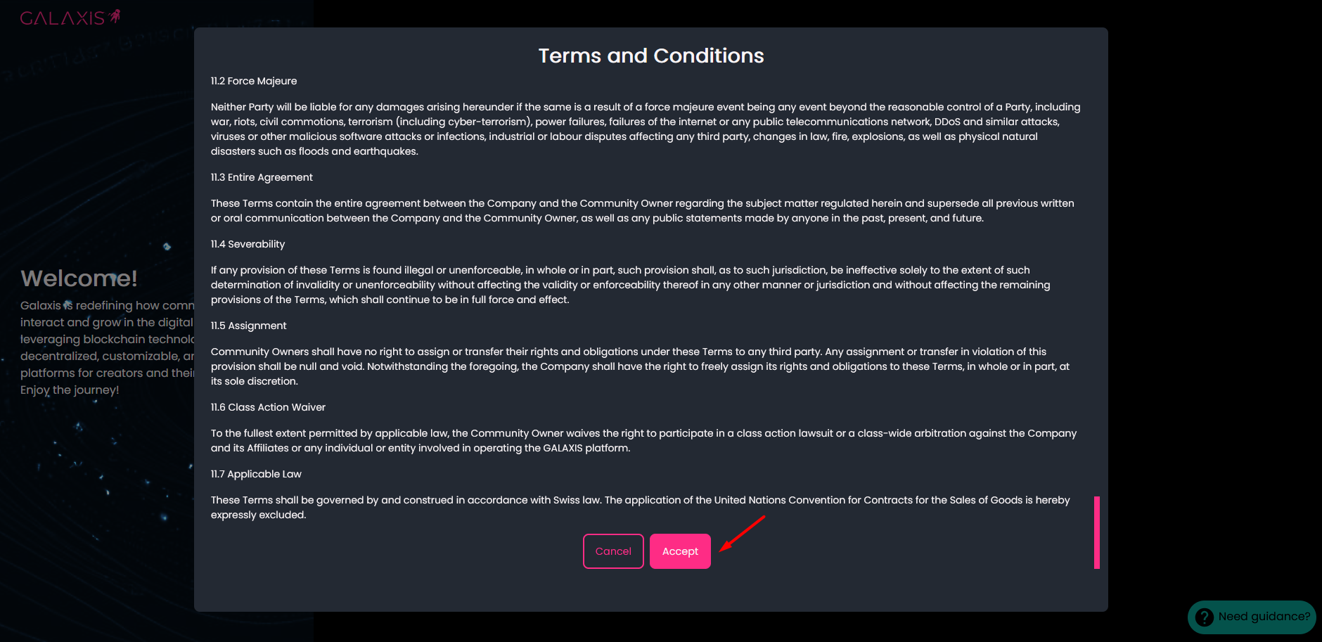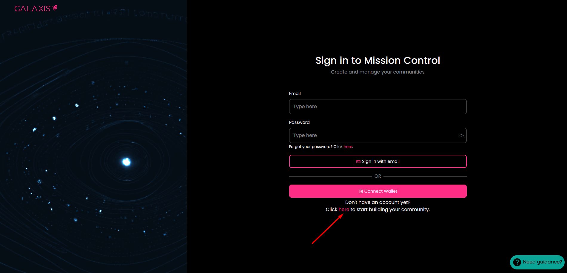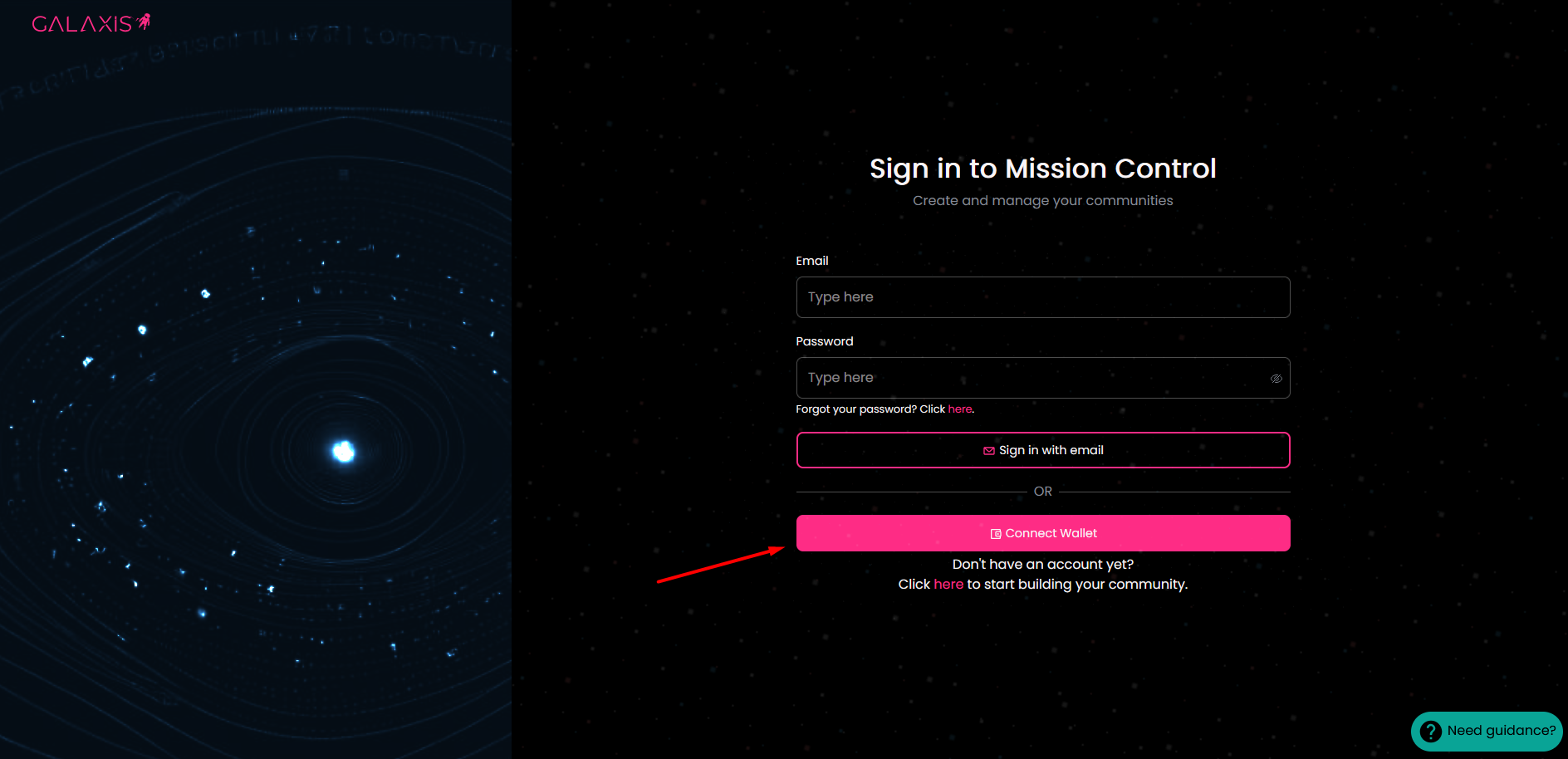 The Mission Control is the admin interface of the Galaxis Platform where the community owner can build and manage their community.