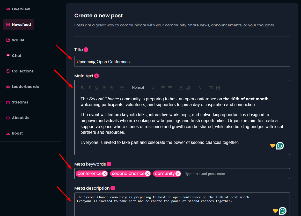 As a community owner, you can share important information with your members and website visitors by using the Newsfeed to highlight specific events and updates within your community.
