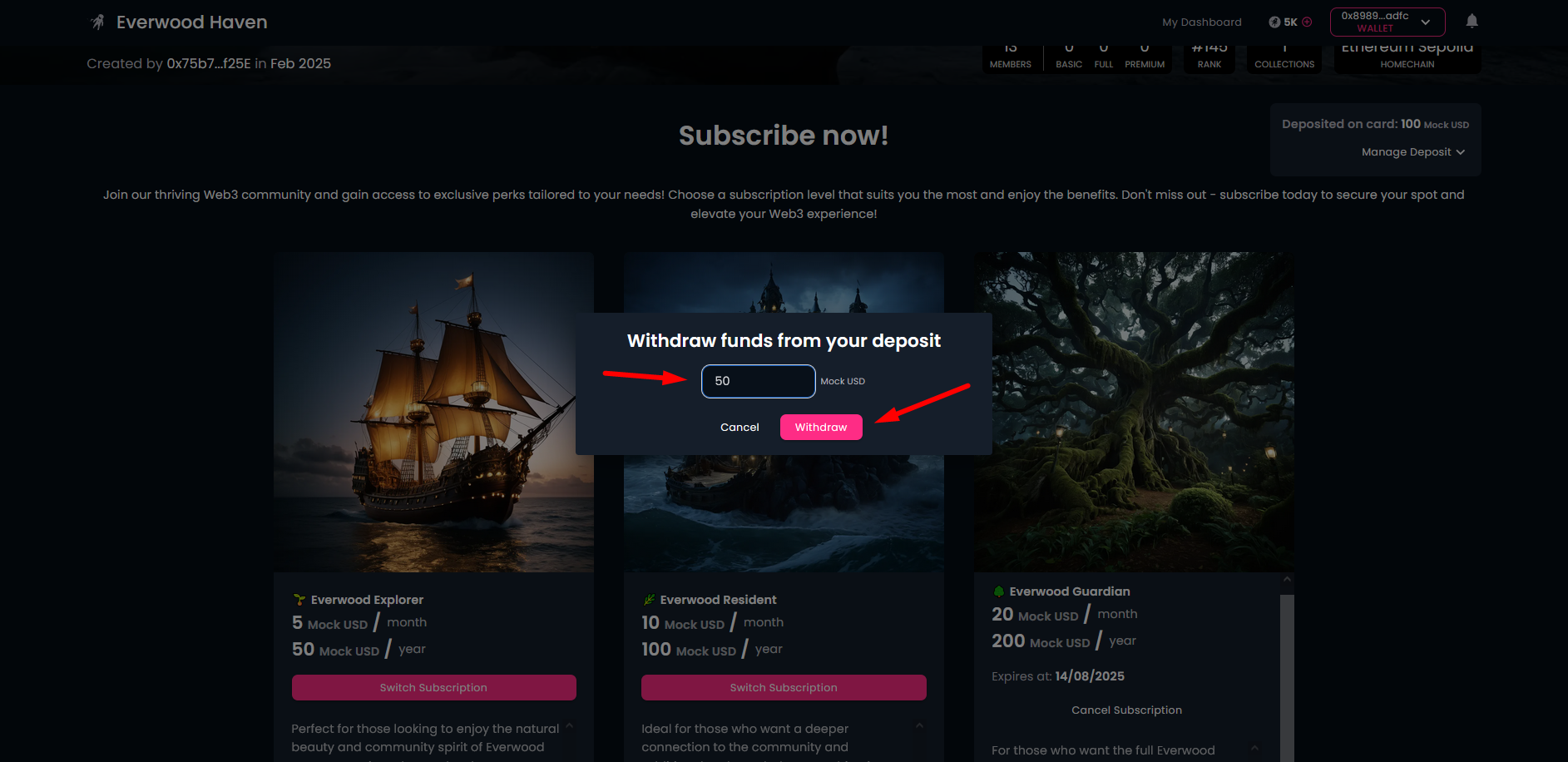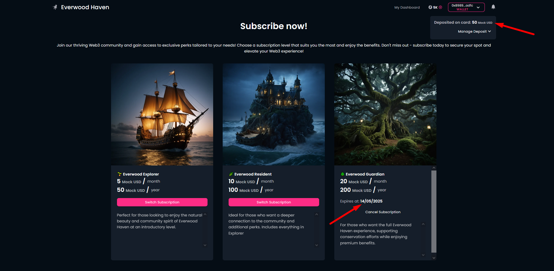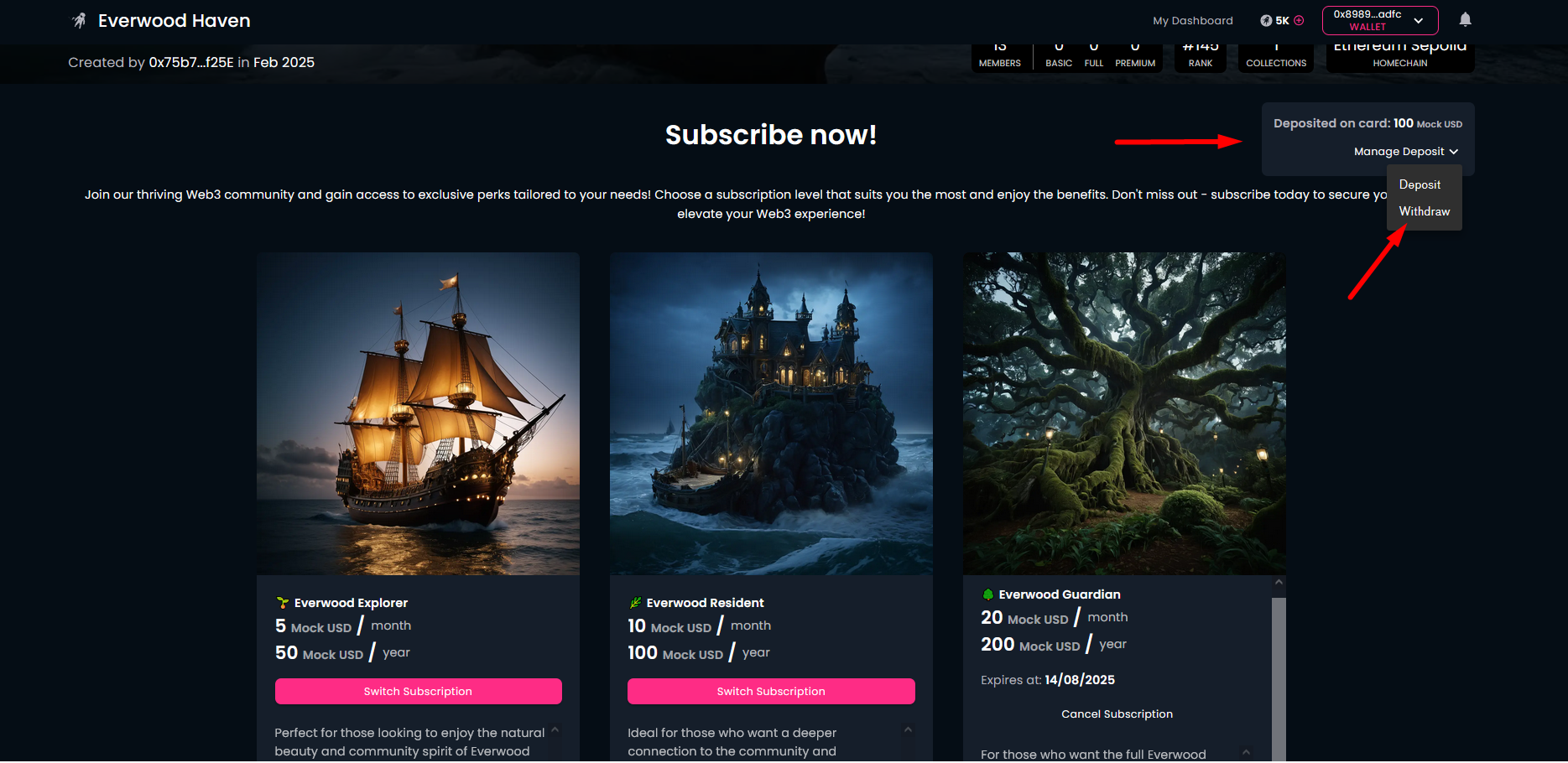 Subscriptions is a great feature in the Galaxis community ecosystem. Community owners can define their own membership tiers, receive money (subscription fees) regularly, and in return, provide the community members with extra services and benefits.