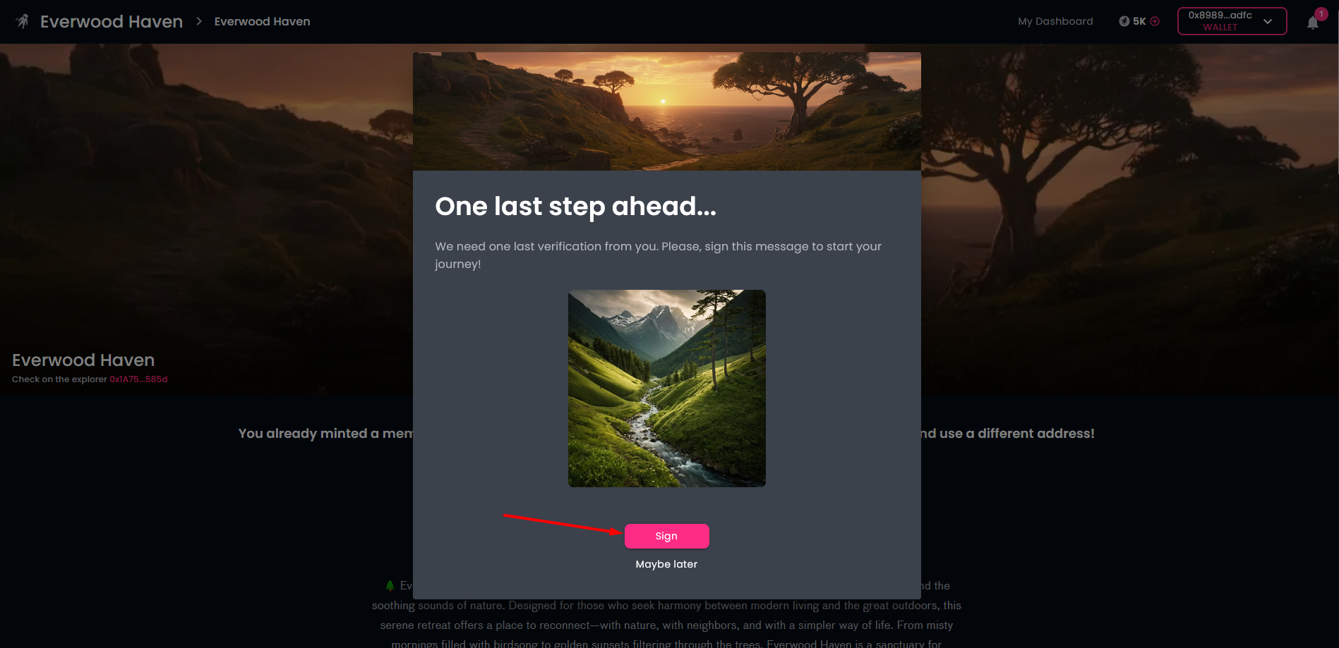 During the membership card minting process we ask you to sign an action. This step makes your membership card "primary". You can do that later, too, but as you must have a primary card to be an active member of the community, it is the best to do it right now. Please do not forget to approve the transaction is your wallet.