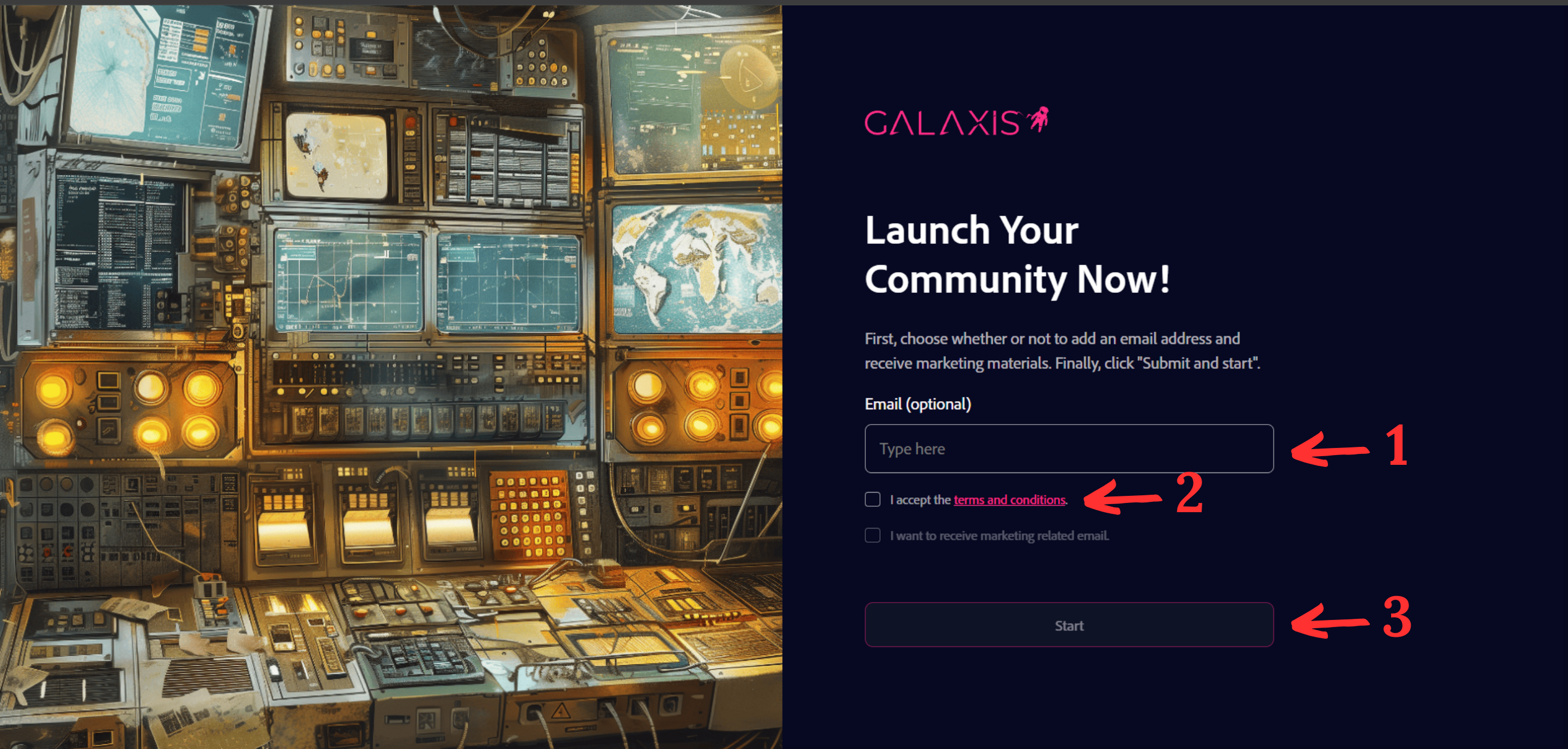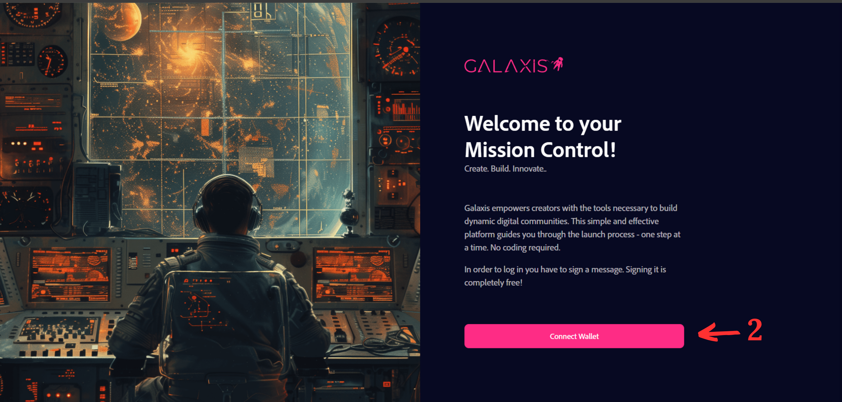 Once you received your Launchkey, the https://mission-control.galaxis.com/ page changes into the following one (you may need to refresh it once):