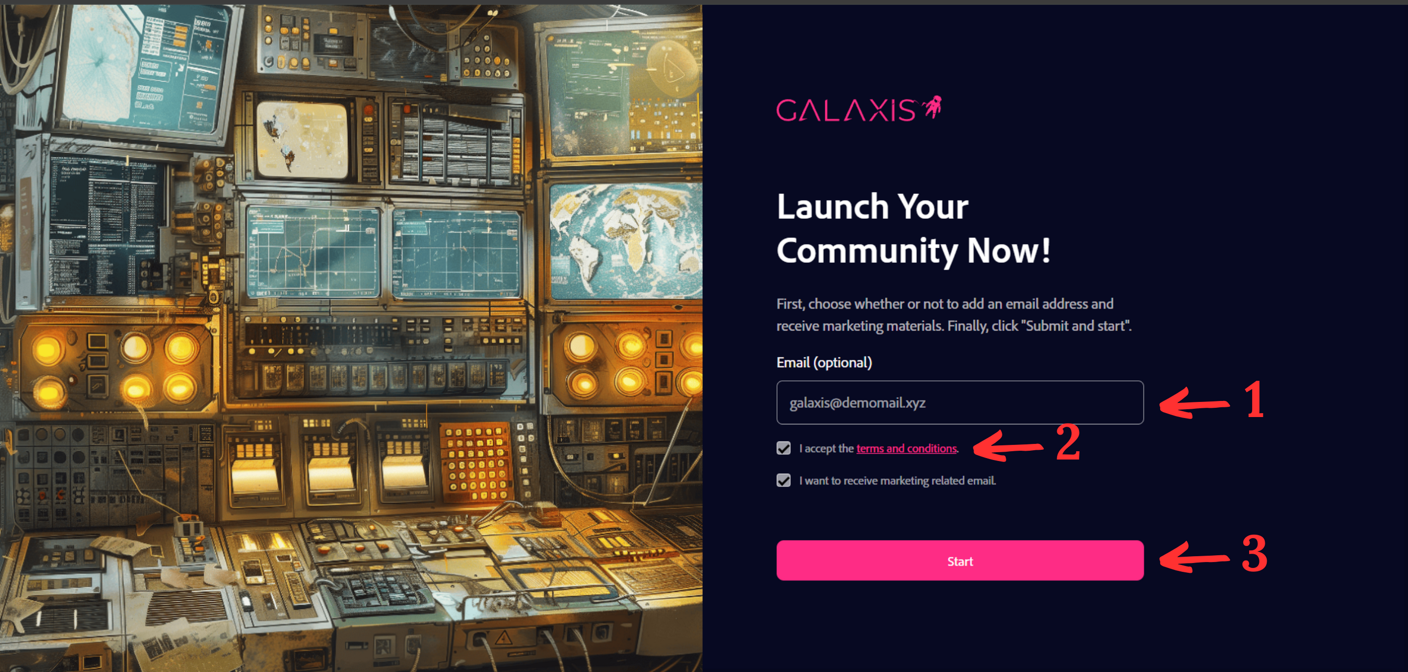 To create your new community (and access Mission Control), you'll need a Launchkey, one for each community you want to create. Once you used a Launchkey, it burns and cannot be used to create other communities.